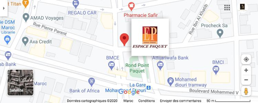 Espace Paquet est situé au centre de la ville de Casablanca, quartier des affaires, à proximité du port et des principales banques.