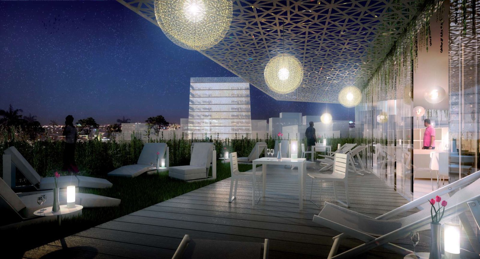 Installés entre 17 et 24 m de haut, à l’abri des regards et sous la protection des émergences, notre projet propose de nombreux lobbys où l’on jouit d’une vue exclusive sur le parc et le quartier d’Anfa, sur Casablanca, sur l’horizon maritime.