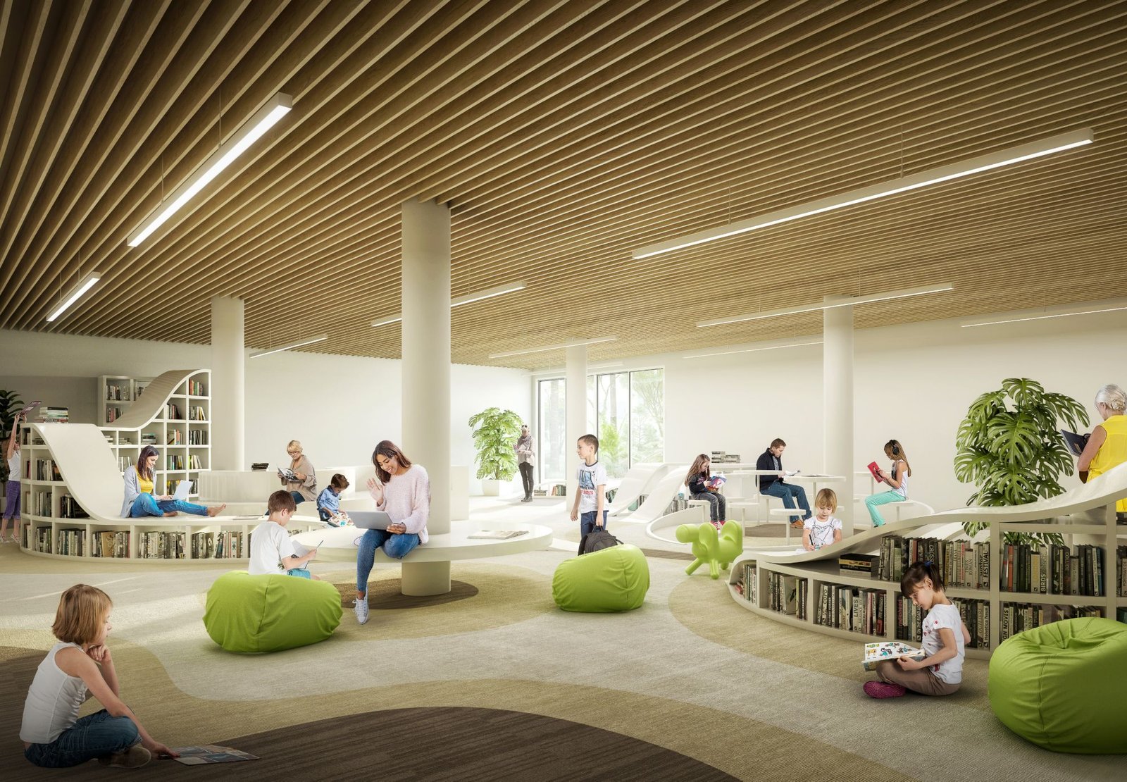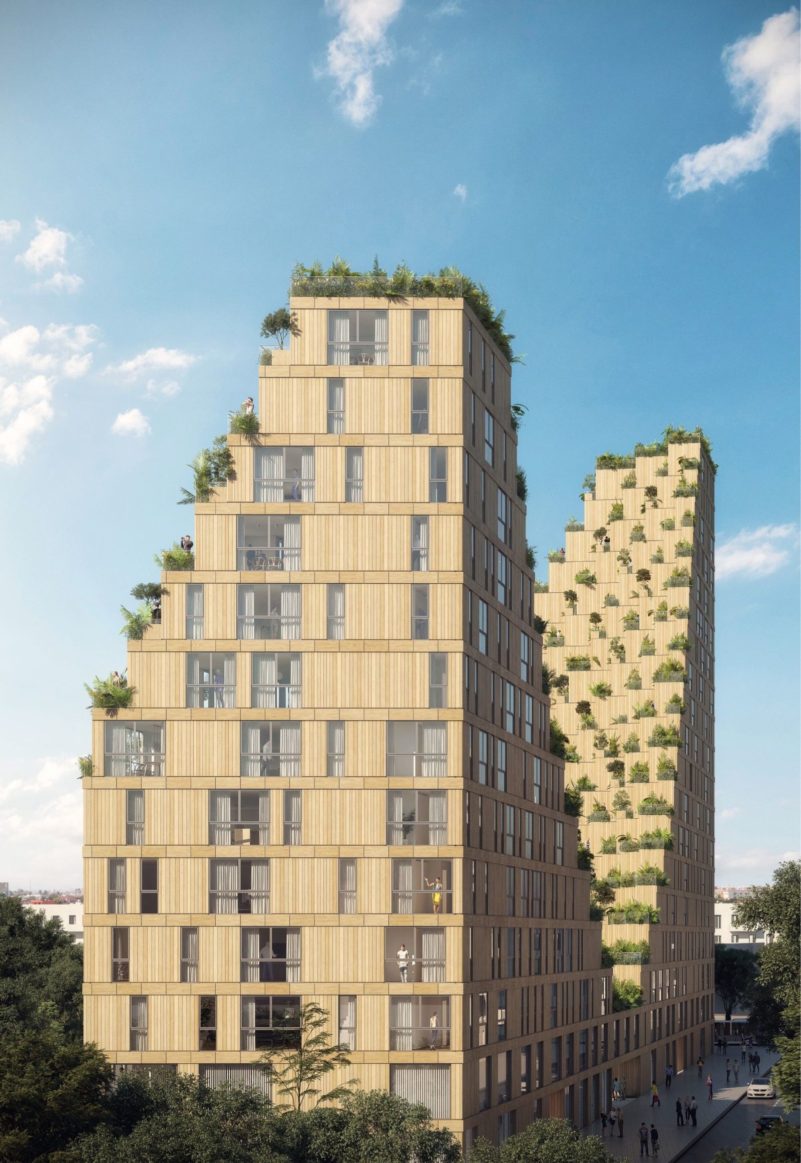 Deux point culminants marquant les émergences de « la ville haute » sont judicieusement positionnées afin d’offrir un maximum de vues vers le sud et le moins d’ombres portées sur le bâtiment. Ainsi, les points hauts du projet sont positionnés au nord et bénéficient d’une large ouverture sur le parc.