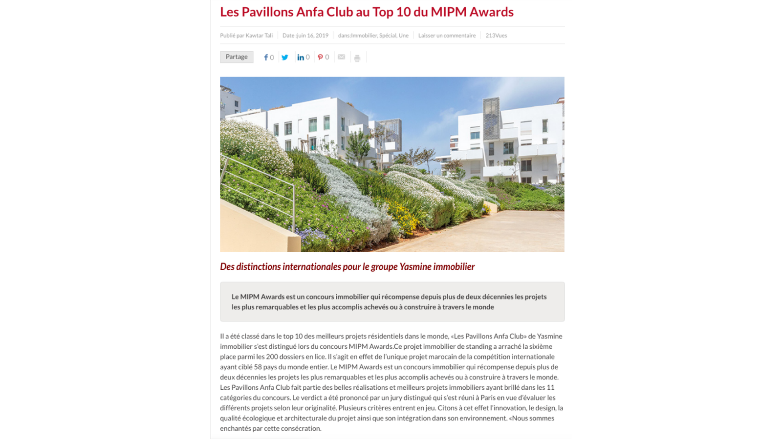Lien : http://aujourdhui.ma/economie/immobilier/les-pavillons-anfa-club-au-top-10-du-mipm-awards