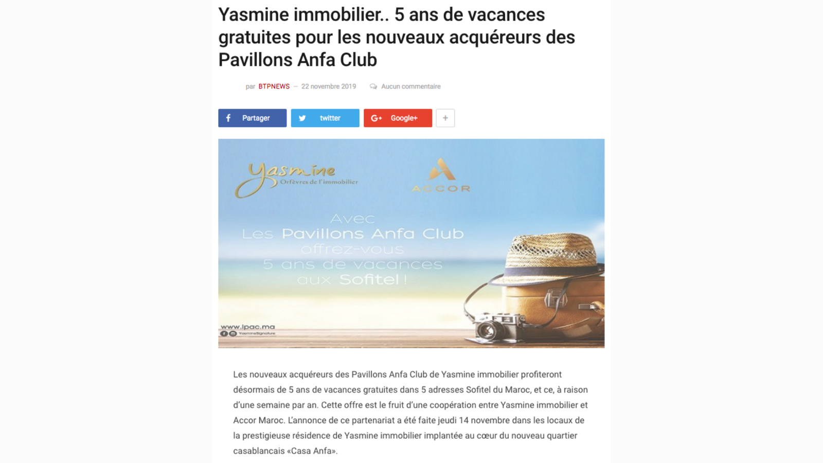 Titre : Yasmine Immobilier & Accor Maroc : un partenariat qui fera bien des heureux