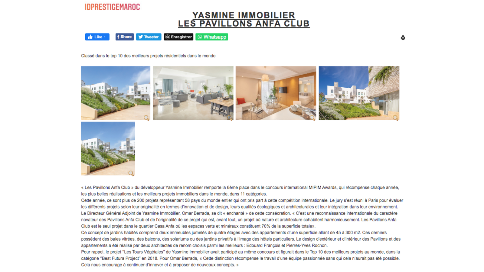 Titre : Yasmine Immobilier. Les Pavillons Anfa club