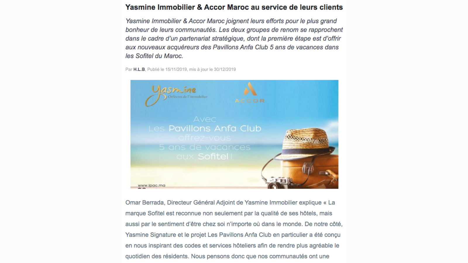 Titre : YASMINE IMMOBILIER & ACCOR MAROC AU SERVICE DE LEURS CLIENTS