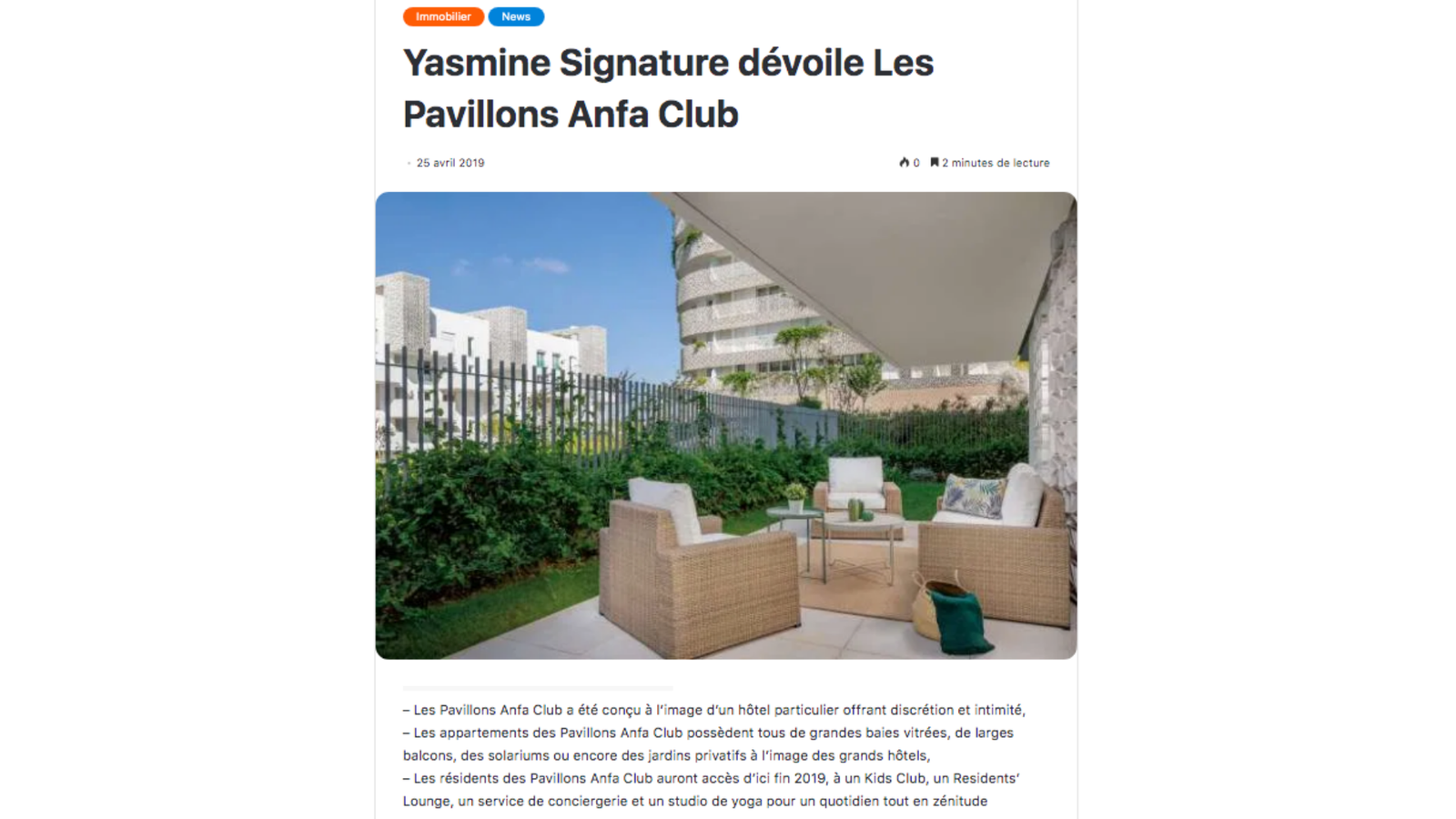 Sujet : Yasmine Signature dévoile Les Pavillons Anfa Club